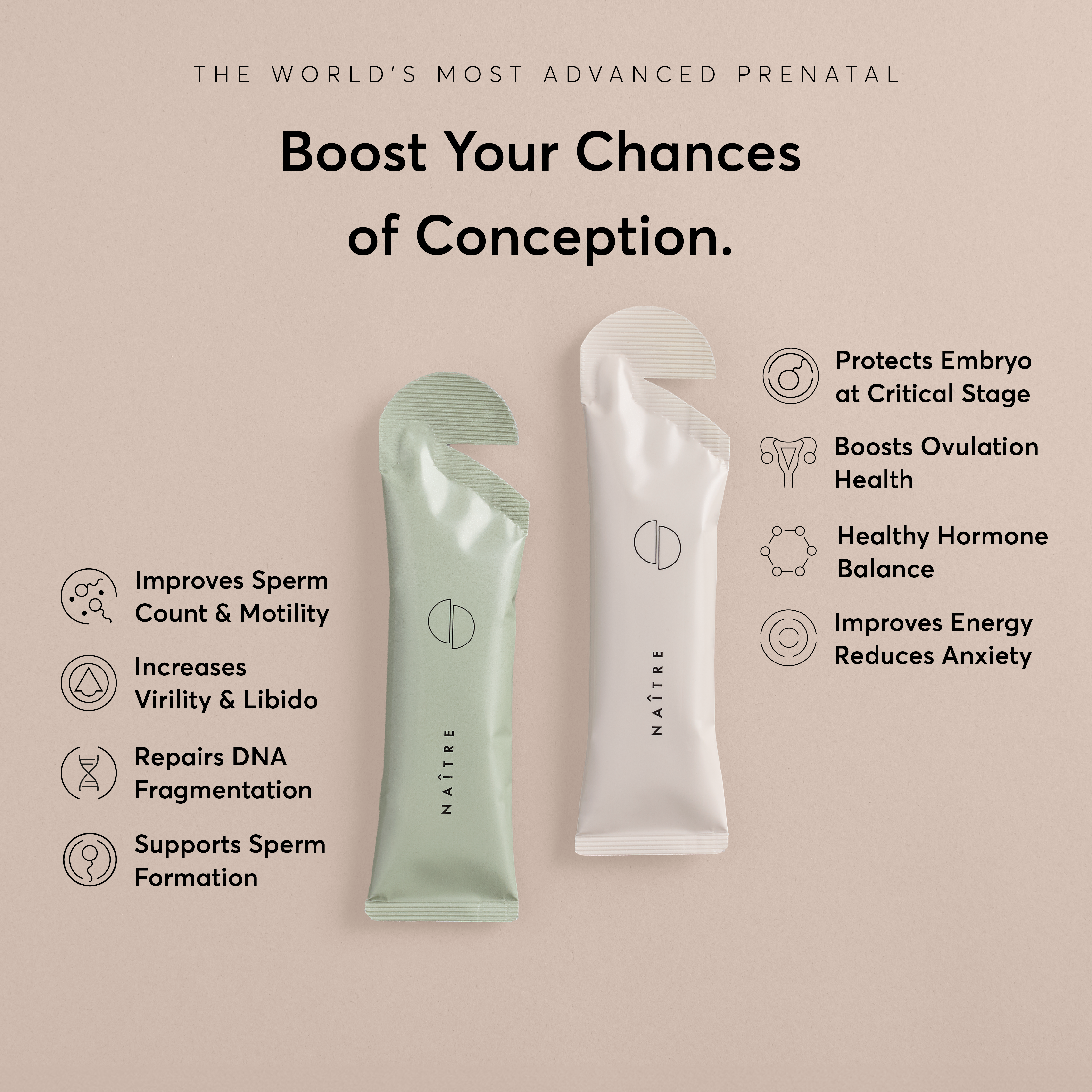Naître's delicately balanced Fertility supplement includes a wide range of scientifically proven key nutrients that help to increase the chances of natural conception and the development of a healthy baby. A highly effective and convenient way to ensure that the body is getting the nutrition it needs during this important time.